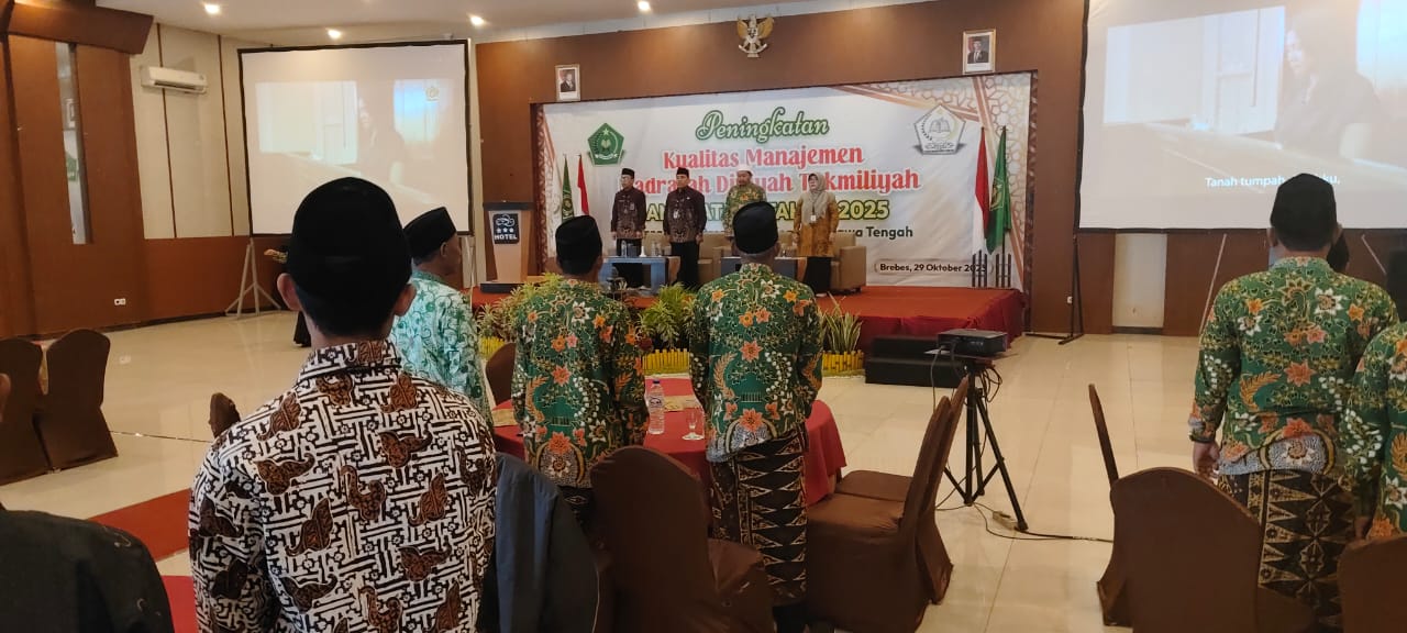 Sementara itu selaku Panitia Penyelenggara, Hj Aini Sa’adah menyampaikan bahwa kegiatan Peningkatan Kualitas Manajemen MDT Angkatan 1 tahun anggaran 2025 di laksanakan di Kab Brebes. Semuanya ada 6 titik lokasi kegiatan yang dibebankan kepada DIPA Kemenag RI.