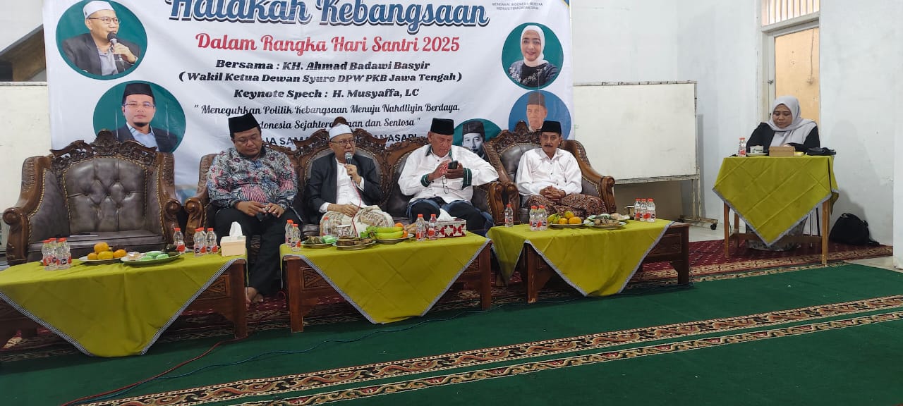 ” Saat orde baru muncul jargon, NU ada dimana mana tapi tidak kemana-mana. Jargon tersebut seiring dengan munculnya PKB sebagai anak kandung dari PBNU maka sudah tidak berlaku lagi. Hal ini sebagaimana bersuci dengan Tayamum diberlakukan saat dalam keadaan darurat alias tidak ada air. Saat air untuk bersuci sudah ada, maka tayamunya batal dan kembali menggunakan air. Ini artinya saat NU mendirikan PKB maka semua nahdliyin pilihan politiknya tentu PKB, sebagai satu satunya partai yang hijau di Senayan,” kata KH Ahmad Badawi Basyir selaku Wakil Sekretaris Dewan Syuro DPP PKB saat menjadi Nara sumber dalam Kegiatan Halaqoh Kebangsaan di Pondok Pesantren As Syamsuriyyah Jagalempeni Kec Wanasari Kab Brebes.