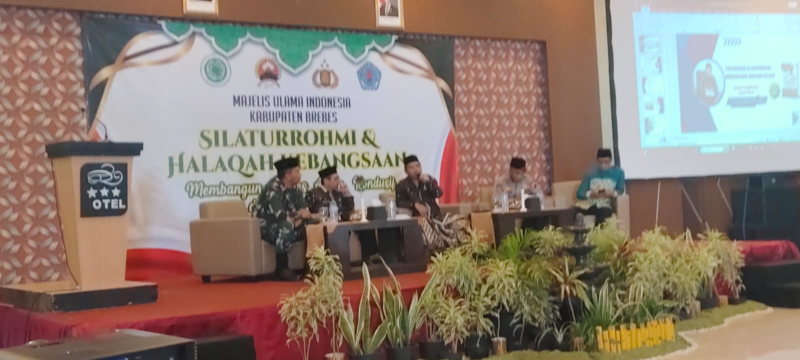 Halaqah Kebangsaan yang diselenggarakan di hotel Grand Dian pada hari Rabu, 1 Oktober 2025 di hadir oleh beberapa Nara Sumber, termasuk Dandim, Rois Syuriah PCNU Kab Brebes, Perwakilan Kapolres dan Dr Akrom Jangka Daosat dari Kementerian Agama Kab Brebes. (/Akhmad Sururi)
